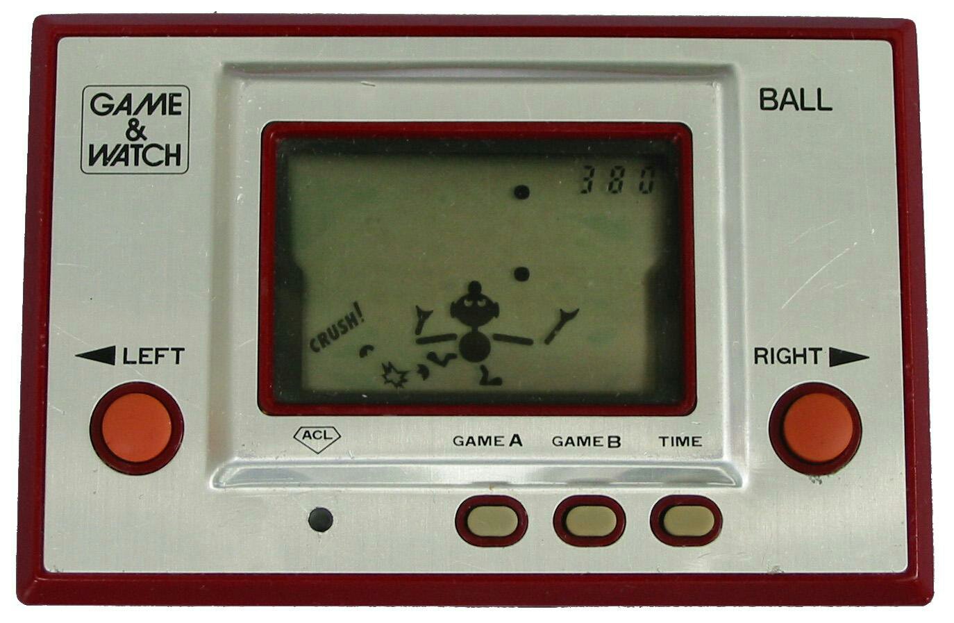 The first Game & Watch was called Ball, a juggling game in which you tried to keep several balls in the air without dropping them (a fitting debut because “juggling” is a common theme in the Game & Watch series, such as in Fire, in which you must catch all the fire victims jumping out of a burning building, and in Chef, in which you must avoid dropping food).