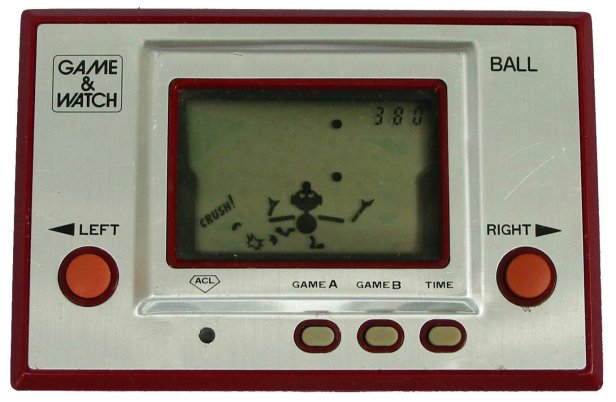 Ball employed a single screen and two buttons to play, but other Game & Watch models would evolve into more complex designs, including one with a plus-shaped control pad, a Yokoi touch that has become the standard on all video game controllers since.