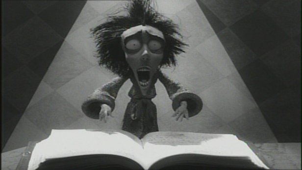 The best things he created at Disney during this time were his short films, the first of which was Vincent (1982), a six-minute black & white stop motion animated film based on Burton’s own poem, narrated by Vincent Price and starring an eccentric boy who fantasizes that he is Price.