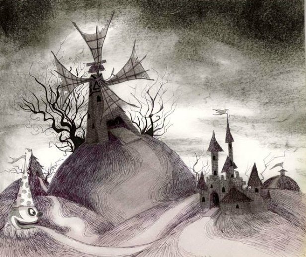 This is some of his amazing unused artwork from The Black Cauldron. An example of how Tim Burton’s talents were being wasted at Disney.
