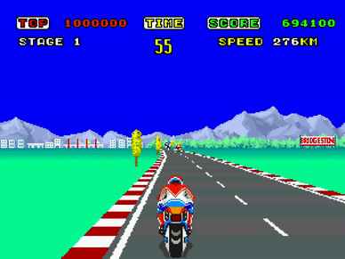 Hang-On (1985), one of the first 16-bit arcade games as opposed to the standard 8 bits that most games in the eighties implemented.