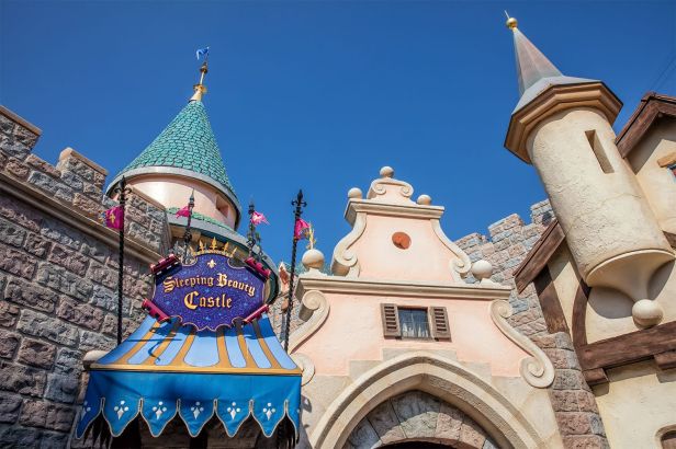 First we will walk down Main Street until we come to the entrance of Sleeping Beauty Castle. Follow me inside please.