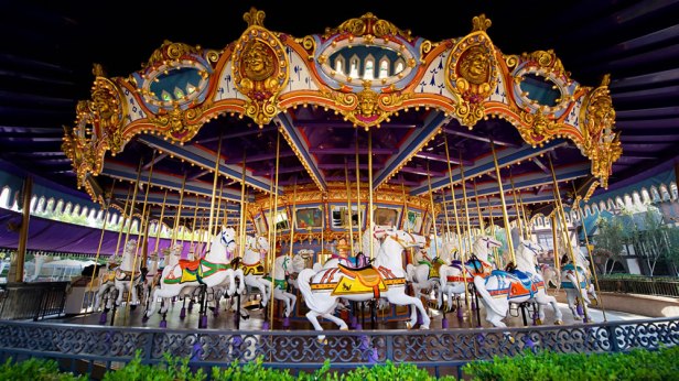 Behind Sleeping Beauty Castle you will find yourself in Fantasyland. One of the first things you will see is King Arthur Carrousel.