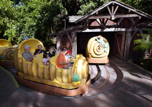 Featuring characters, music and story elements from the animated Br’er Rabbit segments of the Disney film, Splash Mountain has been one of the most popular, most thrilling and most wet rides at Disneyland for years. Don’t forget to collect the photo Barnaby Owl snaps of you as you go down the 52-foot drop at the ride’s finale.