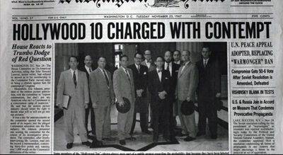 This controversy led to a series of court hearings investigating communist infiltration in the motion picture industry, which actually led to a number of people being blacklisted. One group dubbed the Hollywood Ten, a group of ten producers, directors and screenwriters such as Dalton Trumbo, Rick Lardner, Jr. and John Howard Lawson, attacked the investigation against them as an unconstitutional violation of free speech, resulting in a year-long prison sentence for contempt of Congress.