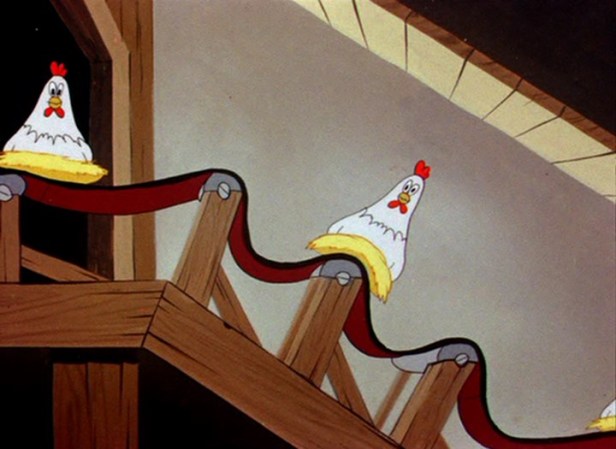 Other samplings include “Sobre las Olas” in scenes involving acrobatic feats, “Freddy the Freshman” in scenes involving football and athletic competitions, Raymond Scott’s “In an 18th Century Drawing Room” which was basically Granny’s theme song as well as frequent on-the-nose samplings of “William Tell Overture,” “Oh! Susanna,” “A-Hunting We Will Go,” “Listen to the Mockingbird,” “Oh Where, Oh Where Has My Little Dog Gone?,” “Aloha ‘Oe” and “The Chicken Reel.”