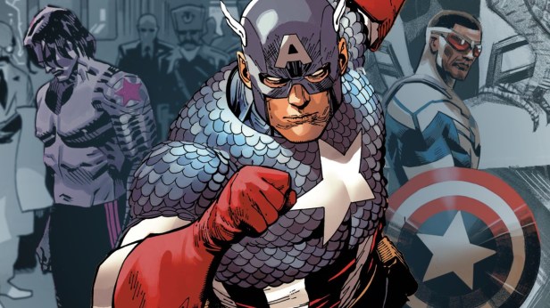 The American government, unable to create more super soldiers, decides to provide Steve Rogers with a patriotic costume, a bulletproof shield and the persona “Captain America” while promoting him as an inspirational mascot for the war effort. Meanwhile, Cap fights in World War II, often alongside his sidekick Bucky Barnes as well as such groups as the Invaders, the Sentinels of Liberty, the 1st Battalion and the 26th Infantry Regiment (aka the “Blue Spaders”) taking on the Nazis and the Axis threat.