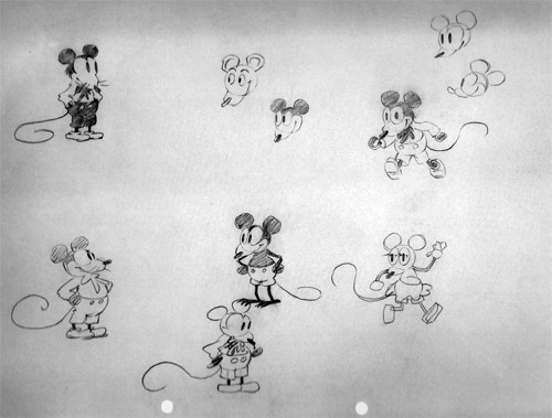 Disney and Iwerks worked on creating a new cartoon star with Iwerks designing everything from cats, dogs and frogs (a process that led to the creation of the characters who would become Clarabelle Cow and Horace Horsecollar) but none of the ideas for animal characters appealed to Walt until he came up with the idea for a mouse while riding the train, thus handing the idea off to Ub Iwerks who refined Walt’s sketch with the design of the character who would go on to be known as Mickey Mouse.