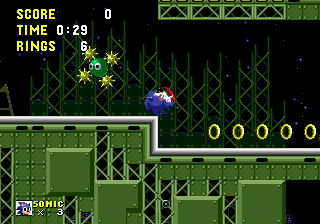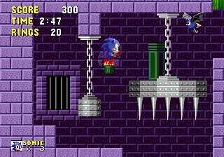 As you control Sonic, you must avoid damage from environmental hazards and enemies, most of which you can defeat simply by rolling into them. Rings are scattered throughout the game. You must be in possession of at least one ring at all times to avoid losing your life when receiving damage. If you get hurt while holding no rings, you lose one of your lives and must start the act over either from the beginning or from the midway save point.