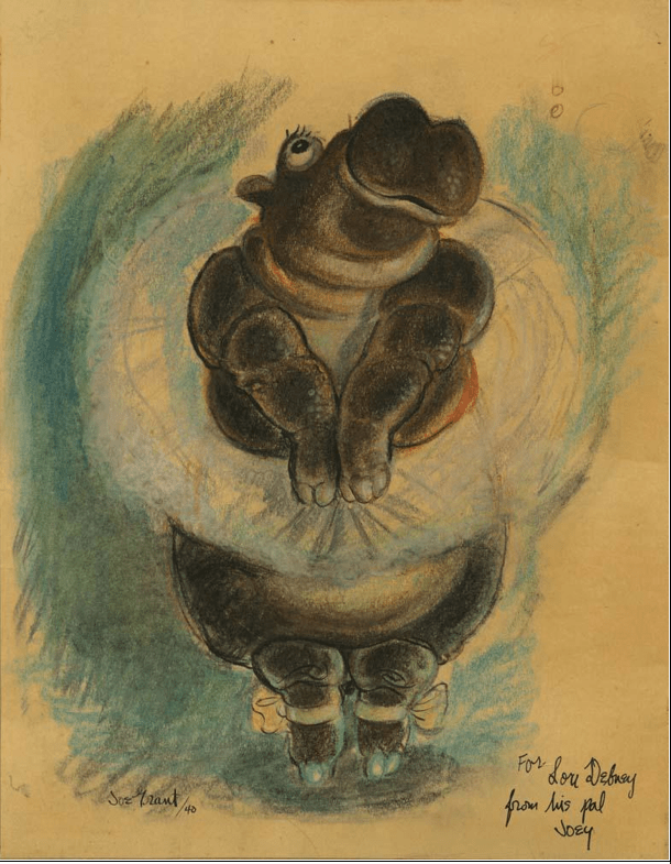 Grant’s passion eventually brought him to L.A. where he attended Chouinard Art Institute (the precursor to CalArts) and became a caricaturist at the Los Angeles Record. Walt Disney saw how stylized and whimsical Grant’s caricatures were and he hired Grant to draw celebrity caricatures for the Mickey Mouse cartoon Mickey’s Gala Premiere (1933), later asking Grant to work at the Disney studio full time to which Grant enthusiastically said yes.