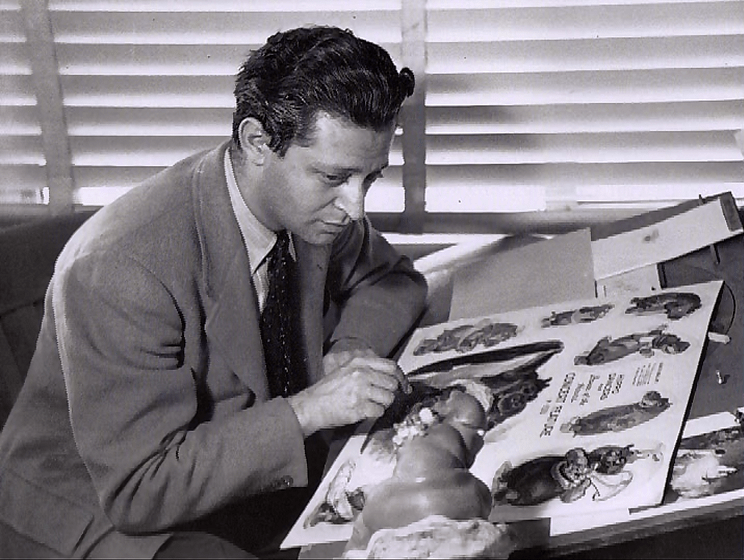 Grant also helped design and develop Pinocchio (1940) and Dumbo (1941), collaborated with Walt Disney, Leopold Stokowski and Dick Huemer on Fantasia (1940) helping select music and develop story ideas for the film’s animated segments, wrote the “Baby Weems” sequence from The Reluctant Dragon (1941) and provided story ideas for Saludos Amigos (1942), The Three Caballeros (1944) and Alice in Wonderland (1951) as well as helping write and direct some of Disney’s best wartime shorts Reason and Emotion, Education for Death and the Donald Duck cartoon Der Feuhrer’s Face, all released in 1943. But one of Grant’s most significant contributions to Disney in this period was that he created the concept of a cocker spaniel falling in love with a street mutt which ultimately became the feature film Lady and the Tramp (1955).