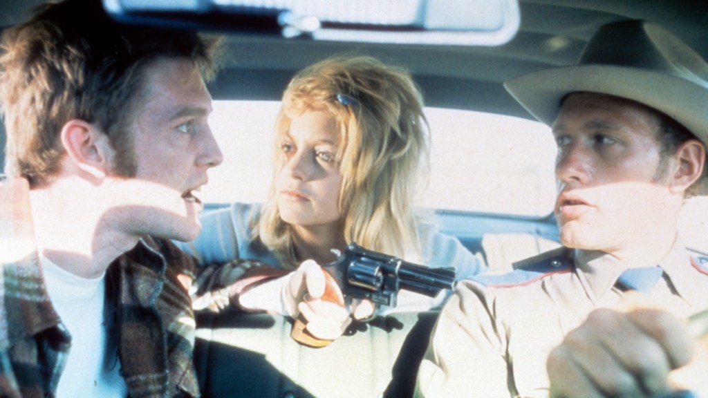 Spielberg’s first widely released full-length feature film was Universal’s The Sugarland Express (1974) about a young married couple played by Goldie Hawn and William Atherton who go on the run. It got good reviews and its screenplay was honored at the Cannes Film Festival, but it was not a huge commercial success.