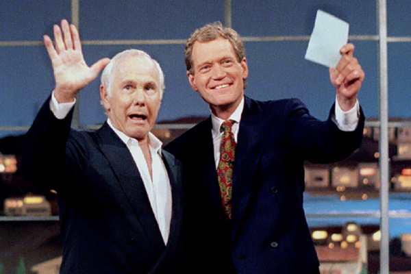 Letterman considered Cincinatti broadcaster Paul Dixon his biggest inspiration when he decided to pursue a broadcasting career. And after graduating from Ball State in 1969, Letterman used his broadcasting experience to land a job as a weatherman in Indianapolis, which is how he got his start on television. Letterman was also experimenting with his comedy by making witty remarks and doing silly things like reporting the weather for fictitious cities. Letterman’s first national television exposure was as an ABC Sports pit road reporter at the Indianapolis 500, where he even got to interview Mario Andretti.