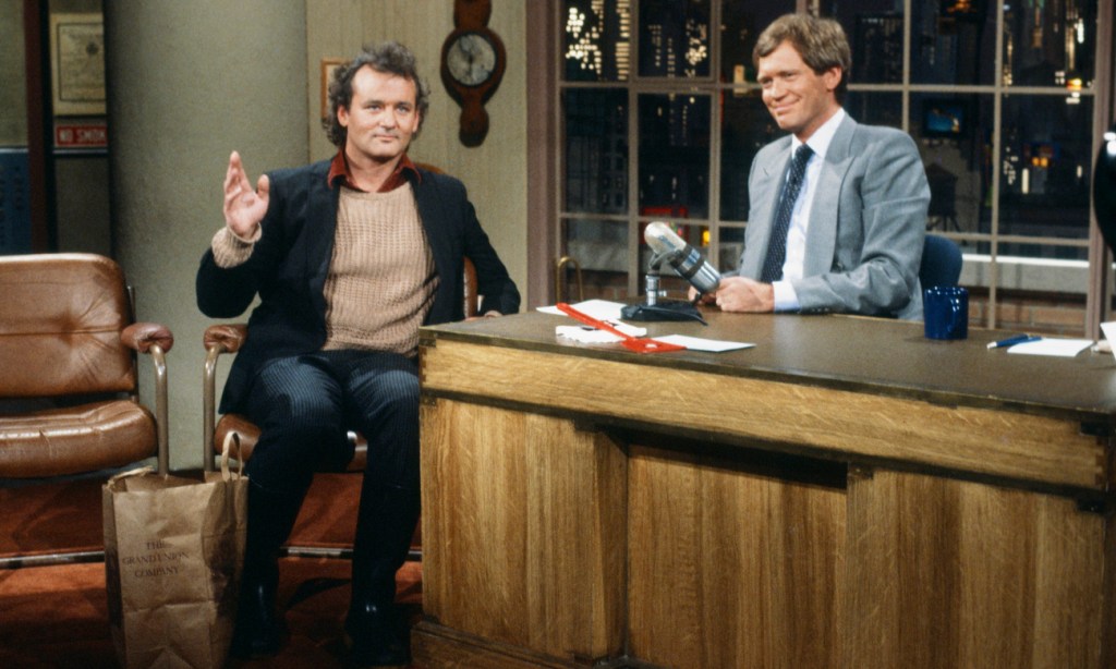 Late Night with David Letterman began airing on NBC in 1982, following Johnny Carson and replacing The Tomorrow Show with Tom Snyder. Former SNL band member Paul Shaffer was Letterman’s sidekick, band leader and musical director and Bill Murray was his first guest. The show was just as quirky and irreverent as Letterman himself. His antics were very popular with college-age viewers who liked the show’s unpredictable and edgy nature, which helped the show develop a cult following. The show became known for Letterman’s documentary-like man-on-the-street segments (something many talk shows do today but was new at the time), segments like “Stupid Pet Tricks” and the “Top Ten List” and such antics as dropping watermelons off five-story buildings and attaching cameras to dogs.