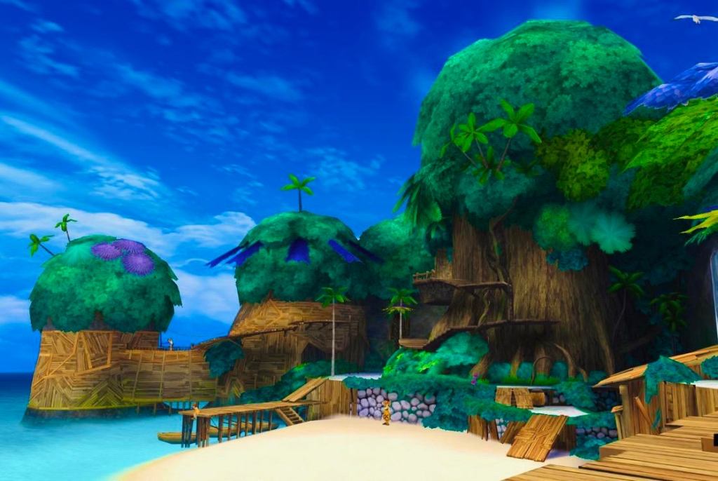 In addition to Disney characters, Final Fantasy fans will encounter many familiar faces as well. On Destiny Islands, Sora is friends with young versions of the characters Tidus and Wakka from Final Fantasy X and Selphie from Final Fantasy VIII, in Traverse Town, Sora meets Squall Leonheart aka Leon from Final Fantasy VIII and Aerith, Cid and Yuffie from Final Fantasy VII, and Sora can encounter and fight Cloud and Sephiroth from Final Fantasy VII at the Olympus Coliseum. Plus you can talk to many Moogles throughout the game who will sell you goods.