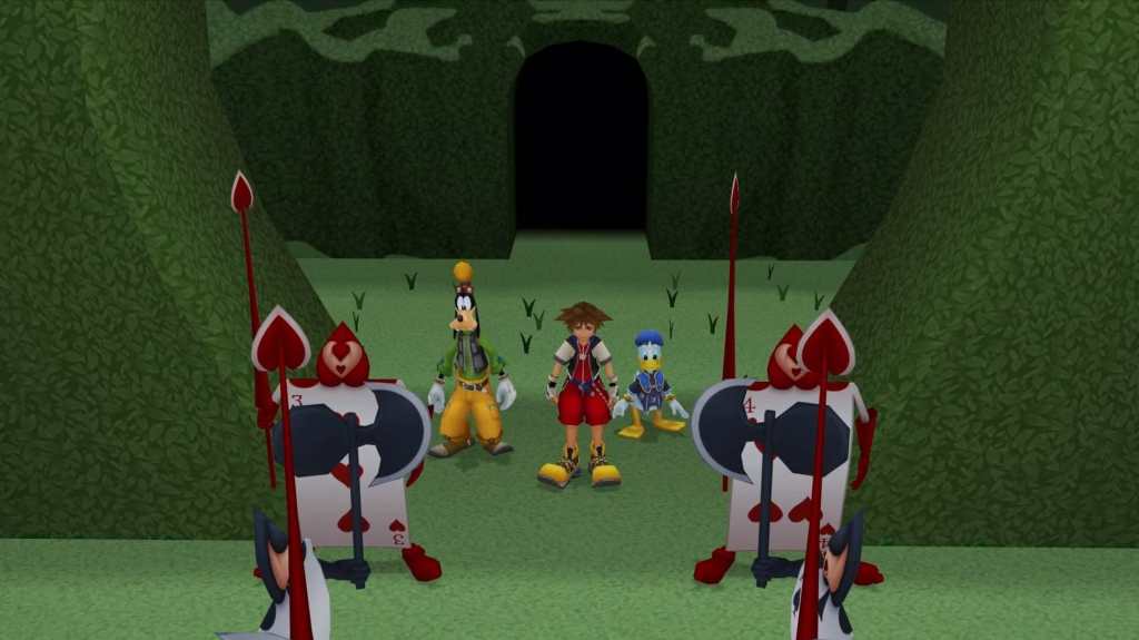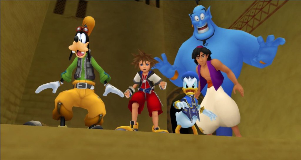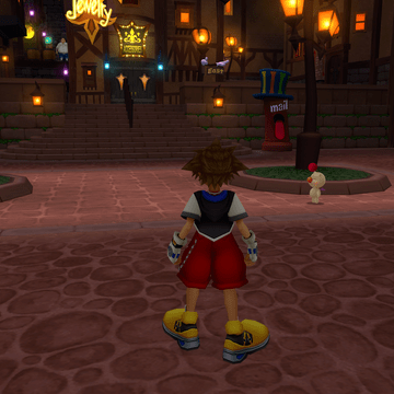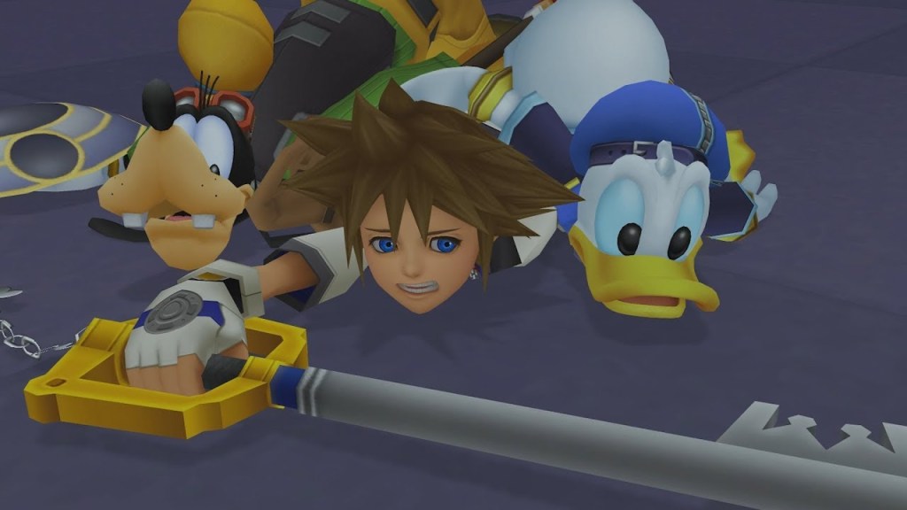 When Donald and Goofy reach Traverse Town, they eventually encounter Sora and discover his Keyblade, thinking he must be the one who Mickey wrote about. Sora, who is looking for his friends Riku and Kairi, and Donald and Goofy, who are looking for Mickey, decide to help each other find each other’s friends. It is here that the game truly begins as Sora, Donald and Goofy set off in their ship to travel across space visiting different worlds, fighting Heartless and restoring the world order.