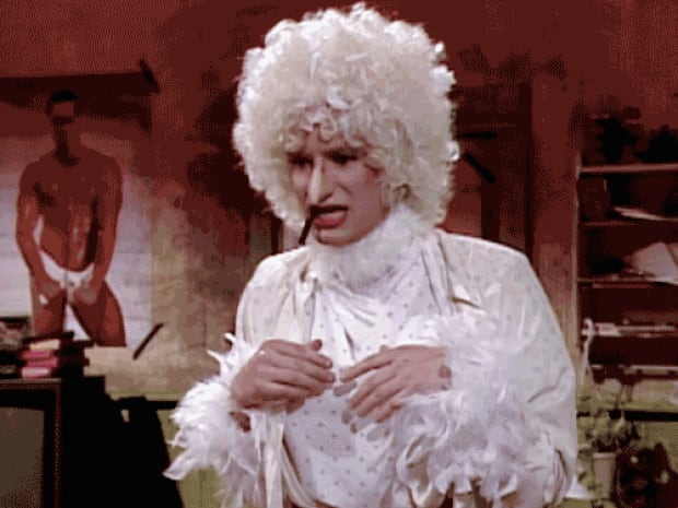 Openly gay Scott Thompson and Kids in the Hall writer Paul Bellini have also collaborated in music with the queercore punk band Mouth Congress, and Thompson has played Hank Kingsley’s assistant Brian in The Larry Sanders Show, Jimmy Price in Hannibal, Mr. Bane in Degrassi: The Next Generation and has had guest roles in Star Trek: Voyager, Dharma & Greg, The Simpsons, Reno 911!, American Gods and American Dad! He also has reality show experience hosting the Canadian series My Fabulous Gay Wedding.