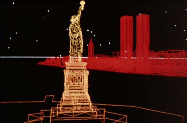 The first time digital imagery was seen in a Hollywood film was in Michael Crichton’s Westworld (1973), in which an android’s point of view was pixelized using computer technology that was processed by none other then John Whitney’s son John Whitney Jr. along with Gary Demos. Westworld’s sequel Futureworld (1976) was the first mainstream film to show 3D wireframe imagery, plus University of Utah graduate students Ed Catmull (future co-founder of Pixar) and Fred Parke (CG facial animation pioneer) created a digital hand and face that would also appear in the film.