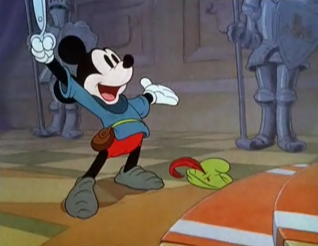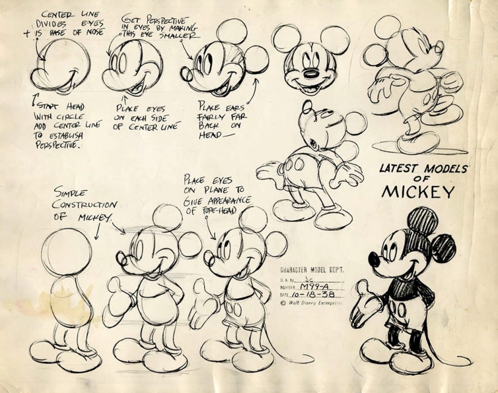 Fred Moore was first hired by Walt Disney in 1930 mostly to do work on the Silly Symphonies, but he did not advance as quickly as other animators. He was an assistant animator to Les Clark for over two years before finding a place for his skills as a series animator on Mickey Mouse cartoons in 1932. With Mickey cartoons, Moore began to outshine his fellow animators with natural and seemingly effortless artistic skills on such shorts as The Mad Dog (1932), The Klondike Kid (1932), Mickey’s Gala Premier (1933), The Steeplechase (1933), Two-Gun Mickey (1934) and Brave Little Tailor (1938). The expressive way Moore drew Mickey Mouse with a pear-shaped body and humanistic body language inspired Walt to declare Moore’s way the standard, which made Moore the resident Mickey guy. And Moore would even be the one responsible for redesigning Mickey with pupils and creating his most popular look, that version making his screen debut in Fantasia (1940).