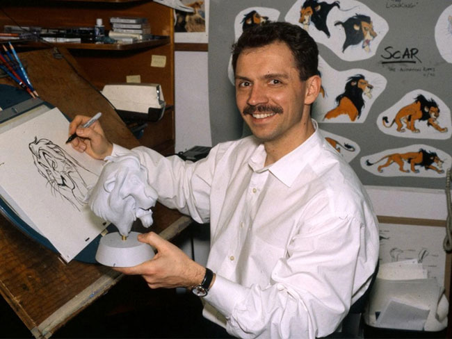 Andreas Deja was promoted to supervising animator by the time The Little Mermaid (1989) came around. On that movie Deja supervised the animation for Ariel’s father King Triton, and throughout the nineties Deja would go on to supervise the animation for many other well-known Disney characters from that period, including three popular Disney villains: the handsome but evil Gaston from Beauty and the Beast (1991), Jafar from Aladdin (1992) who was evil in a less boisterous and more understated way, and the sinister Scar from The Lion King (1994). In the interest of avoiding being typecast and expanding his range, Andreas Deja was originally going to pass on animating Scar but hearing Jeremy Irons’ vocal performance was enough to get Deja interested in the character. Whenever I think of Andreas Deja, these Disney Renaissance villains are the first thing that come to my mind.