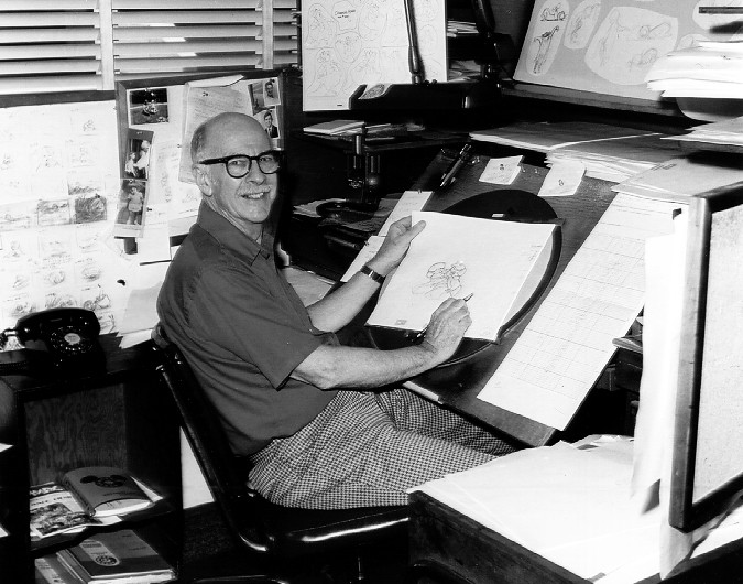 Oliver Martin Johnston Jr. was born in Palo Alto, California in 1912 and loved to draw from childhood through high school into adulthood. Although like most aspiring artists, he didn’t receive a lot of encouragement from family and friends because they saw it as a dead end career. He might have abandoned his artistic ambitions when he attended Stanford University and majored in journalism, but he enrolled in the college’s art class where he learned about painting (as well as having his mind opened up by artists like DaVinci, Michelangelo, Van Gogh and Monet), plus he found work as a cartoonist for Stanford’s humor magazine. This is how he met fellow Stanford student Frank Thomas who had ambitions to work for Disney and convinced Johnston to apply too. Johnston and his friends had always enjoyed watching Disney cartoons at the theater but he never dreamed of being an animator himself, but that changed when Johnston realized he had more interest in bringing the personality of a character to life than simply drawing them in still form. He moved to Los Angeles and attended art school there, where Johnston’s art teachers could see Johnston had an emotional quality to his drawings. Something Walt Disney could see as well, which led to Disney hiring Johnston.
