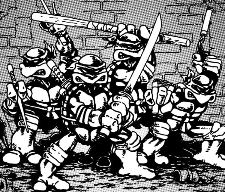 One day while coming up with ideas for comics, Eastman drew a funny picture of a turtle standing on its hind legs wearing a mask and holding nunchucks. As soon as Laird came up with the idea to make Eastman’s ninja turtle a teenage mutant, they decided to make it a team of ninja turtles, came up with their radioactive gene-altering backstory, wrote and drew a one-shot story set in the streets of New York City and ended up self-publishing it in 1984.