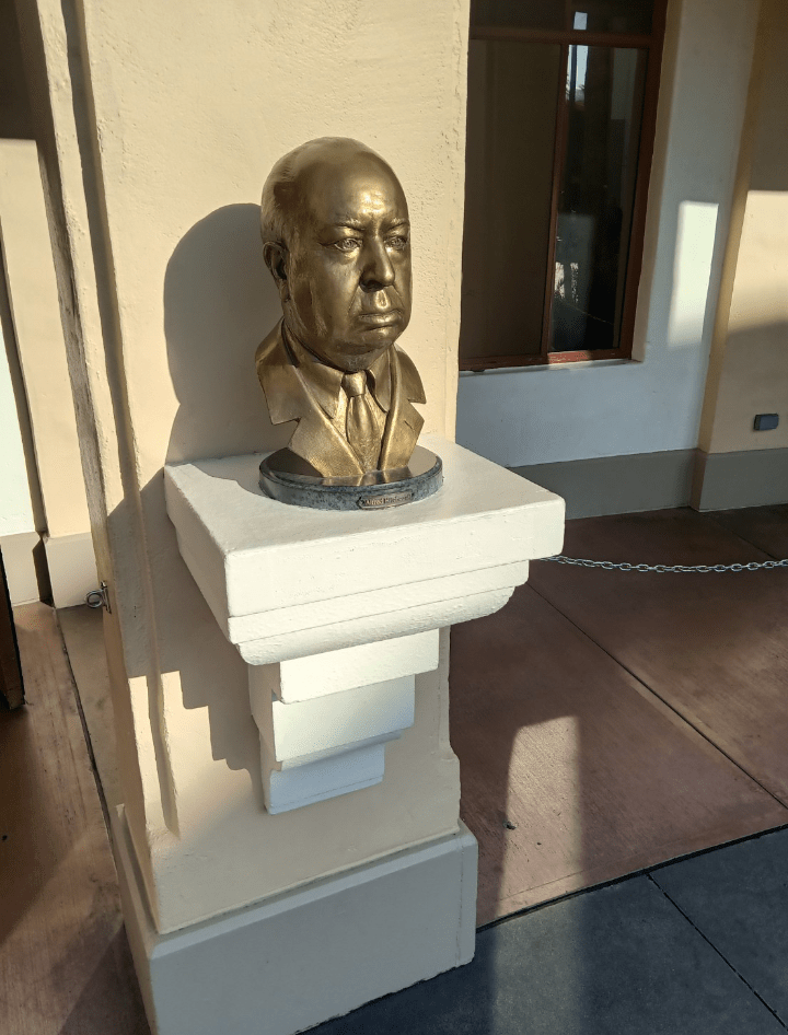 A bust of Alfred Hitchcock near the entrance of the park. Should have gotten a side profile.