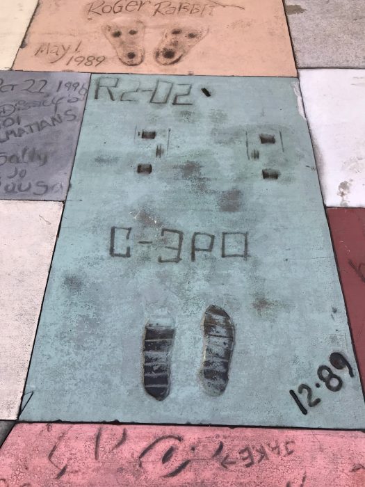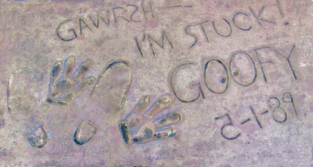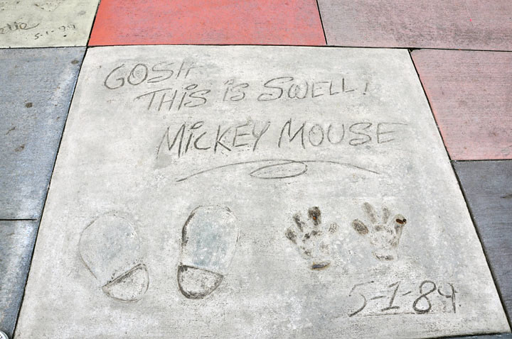 A replica of the Grauman Chinese Theater from the real Hollywood Boulevard stands at the far end of this area. Like the real Grauman’s, this theater is also the location of many celebrity hand and foot prints, including a few Disney characters.