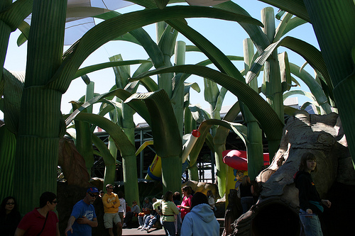 Other Streets of America attractions included Honey, I Shrunk the Kids: Movie Set Adventure, based on the 1989 film Honey, I Shrunk the Kids and opening a year after that film was released. This was a playground that gave guests the feeling of being minimized by a shrink ray and it featured giant rideable ants, explorable anthills, spraying hoses, giant bumblebees and more. This area lasted until 2016 and was eventually replaced in 2019 with Star Wars: Galaxy’s Edge.