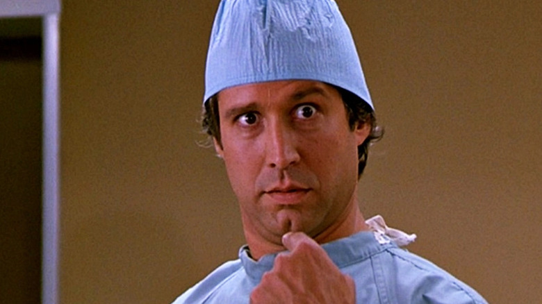 A lesser known comedy that was nonetheless well-received was the thriller Fletcher (1985) starring Chase as an L.A. Times reporter named Irwin Fletcher who is hired by a millionaire to kill someone. A role Chase would reprise in the less successful sequel Fletcher Lives (1989). Other films Chase made that decade include the John Landis spy comedy Spies Like Us (1985) co-starring Chase’s former SNL castmate Dan Aykroyd, the John Landis Western comedy Three Amigos (1986) with Steve Martin and Martin Short, which became a cult favorite years after its release (and which Chase said was the most fun film he ever made), and the lukewarmly received comedy Funny Farm (1988).
