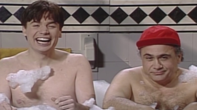 Mike Myers made his film debut when he and Dana Carvey reprised their roles as Wayne and Garth for the 1992 comedy Wayne’s World, which was co-written by Myers and SNL writers Bonnie and Terry Turner and was produced by SNL creator Lorne Michaels. It received mostly positive reviews and became a huge hit, leading to the 1993 sequel Wayne’s World 2 which has the exact same writing team and was also a success, although slightly less so than the first film both critically and commercially.