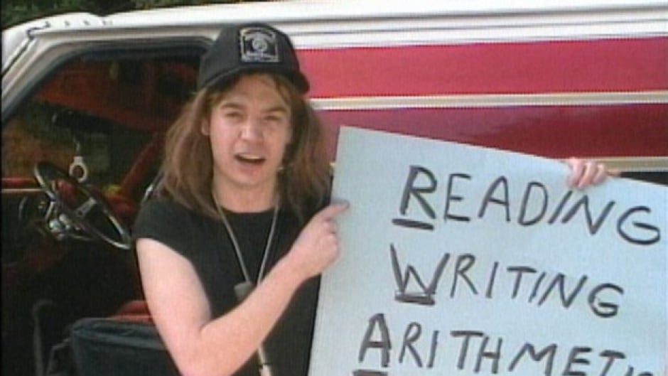 Canadian actor and comedian Mike Myers was born in Scarborough, Ontario in 1963, the son of British immigrants. He has been a performer since the age of two, often acting in Canadian TV commercials (Gilda Radner, who had a Canadian boyfriend and moved to Toronto in the late 1960s, even played his mom in a BC Hydro ad when he was ten). Myers also acted in a lot of Canadian television shows, including a 1975 episode of the CBC sitcom King of Kensington, a 1979 episode of the CTV children’s adventure series The Littlest Hobo (a Lassie-style show about a heroic German Shepherd), the sketch comedy series Bizarre which aired from 1980 to 1986 on CTV (and on Showtime in the United States), and the Canadian variety show City Limits, which featured interviews, music and comedy. Mike Myers introduced a prototype version of his character Wayne Campbell on that show, before Myers brought him back for a segment on the 1987 CBC variety show It’s Only Rock & Roll called “Wayne’s Power Minute,” which was itself a prototype for “Wayne’s World.” Wayne even made an appearance in the music video for City Limits host Christopher Ward’s hit song “Boys and Girls.”