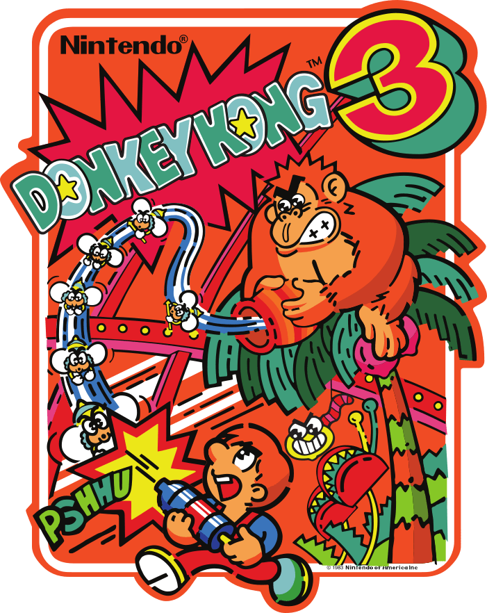 After Donkey Kong became a phenomenon, Shigeru Miyamoto quickly became one of Nintendo’s MVPs. He went on to direct and design Donkey Kong Jr. (1982) which put you in control of Donkey Kong’s son as he rescued his father from captivity and implemented some unused level designs from Donkey Kong. The initial idea for the game was for Donkey Kong to be the playable character, but Miyamoto created the character of Donkey Kong Jr. instead because the game worked better with a smaller character. Miyamoto would bring back the character of Donkey Kong one more time when he designed and directed the arcade game Donkey Kong 3 (1983) in which you play as a bug exterminator named Stanley who must rid his greenhouse of the gorilla while protecting his plants from insects.