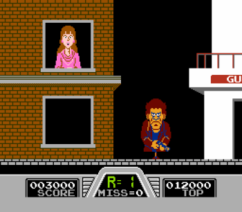 In 1983 Miyamoto shifted from making arcade games to making console games for the Famicom (known as the Nintendo Entertainment System aka NES in America), designing Baseball (1983), Tennis (1984) and Golf (1984), directing the 1984 Famicom version of the arcade game Wild Gunman, which he designed alongside Makoto Kanoh, directing the light gun-compatible Duck Hunt (1984), which he designed with artist Hiroji Kiyotake, and directing and designing Hogan’s Alley (1984), a game in which you aimed your light gun at cardboard cutouts of criminals while trying to avoid the cardboard cutouts of innocent civilians.