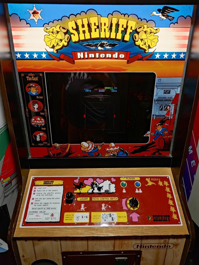 Luckily his dad had connections through friends to Hiroshi Yamauchi, the president of Nintendo, which was still known as a toy and playing card company back in the 1970s but was dabbling in arcade game development at the time. After being impressed by Miyamoto’s toy creations, Yamauchi hired Miyamoto as an apprentice in the Planning Department, but Miyamoto would get to show off his artistic skills when Nintendo tasked him with designing the arcade cabinet for their 1979 arcade game Sheriff, a Western-themed shooter game designed by Genyo Takeda.